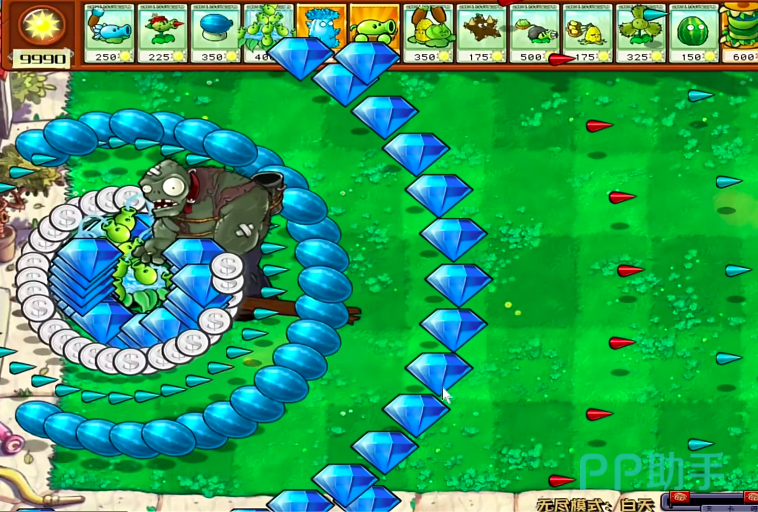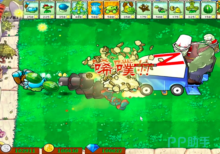 再者就要说说冰车僵尸了,冰车僵尸大多数情况下会出现在无尽模式当中,冰车僵尸开的冰车不仅可以直接破坏沿途的植物防御塔,而且冰车僵尸背后也背着一个小鬼僵尸,可以说在攻击能力上的大大提升,如果玩家有金卡的话,那么通过该关卡的难度并不是很高,如果没有金卡,那么小编非常建议选择香蒲和刀妹这两大主力军,玩家可以直接将香蒲和刀妹儿分别摆在第三路和第四路当中,在攻击过程当中千万要记住分散模式排布。
