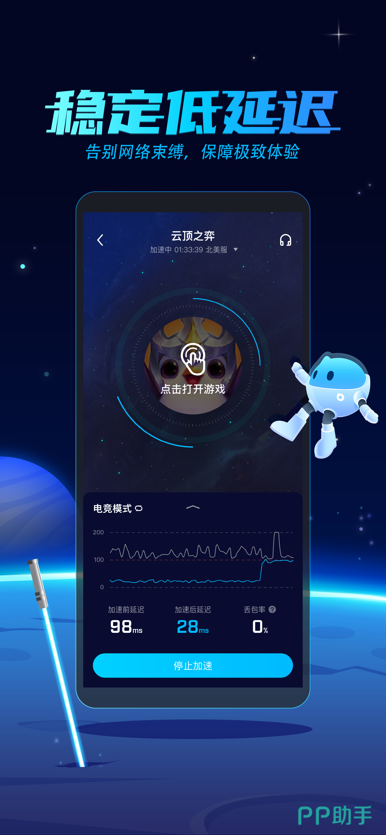 这款加速器不仅能够保证玩家游戏时的网络环境,新用户可以获得3天免广告加速。而在之后观看视频广告就可以获得加速时长,并且游戏中加速器会实时监控玩家的网络波动,帮助玩家减少丢包率以及卡顿的状况出现,让玩家在对战的时候能有非常好的游戏体验。