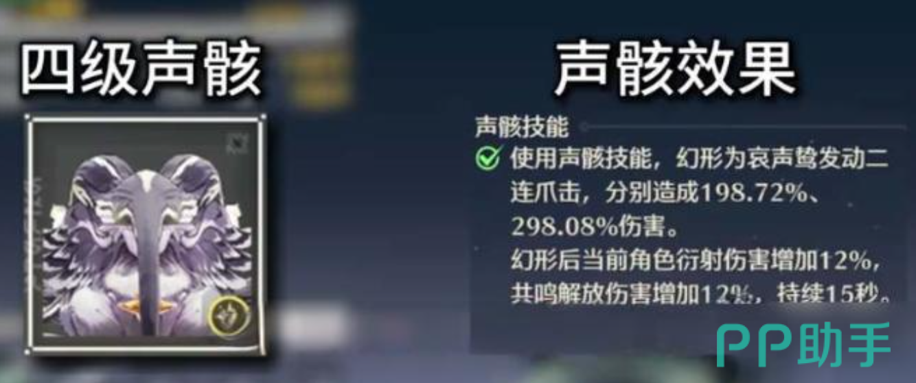 2、在第4级声骸时,小编推荐首选应携带“”,这一声骸可以有效的提升衍射的伤害加成和大招的伤害加成,在与主角的技能效果方面和机制方面都十分的契合,并且可以完美的达到增益效果。