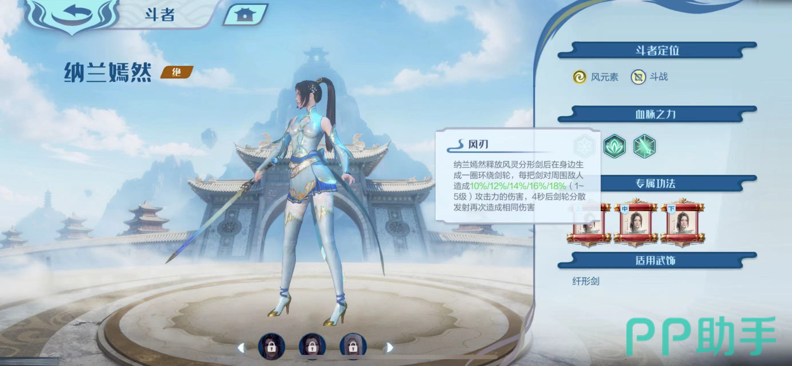 至于三技能叫做风刃,可以在她的身边形成一道由风属性刀刃组成的剑轮。当敌人触碰剑轮的时候,就会受到伤害。第二次释放的时候,即可自动飞向周围的敌人。是一个攻防兼备的技能,可以避免对手近身攻击,又能主动出击。