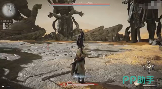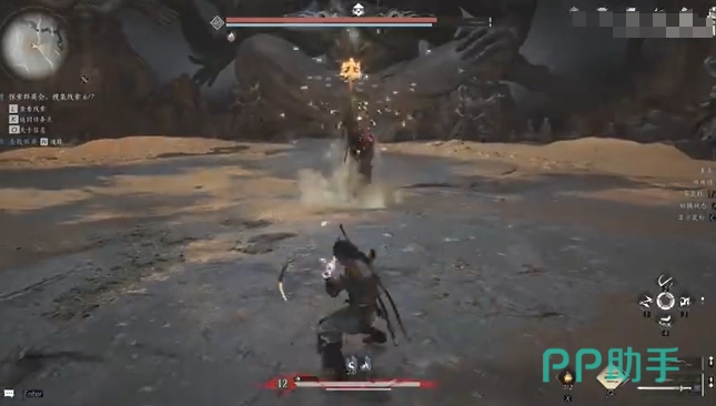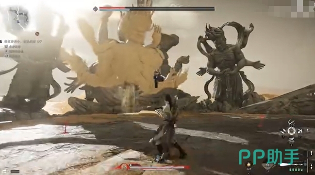 田英进入第二阶段后,战斗难度有所提升,但依然不算太难。此阶段的关键在于应对田英的石像变化。当田英变成小石像时,玩家应狂按E键进行攻击,尽可能地输出伤害。当田英变成大石像时,玩家则应拉开距离,切换到扇子,通过R和Q键回血。大石像的出现实际上为玩家提供了喘息的机会,合理利用这段时间回复生命值,可以保证玩家在这一阶段保持良好的状态。