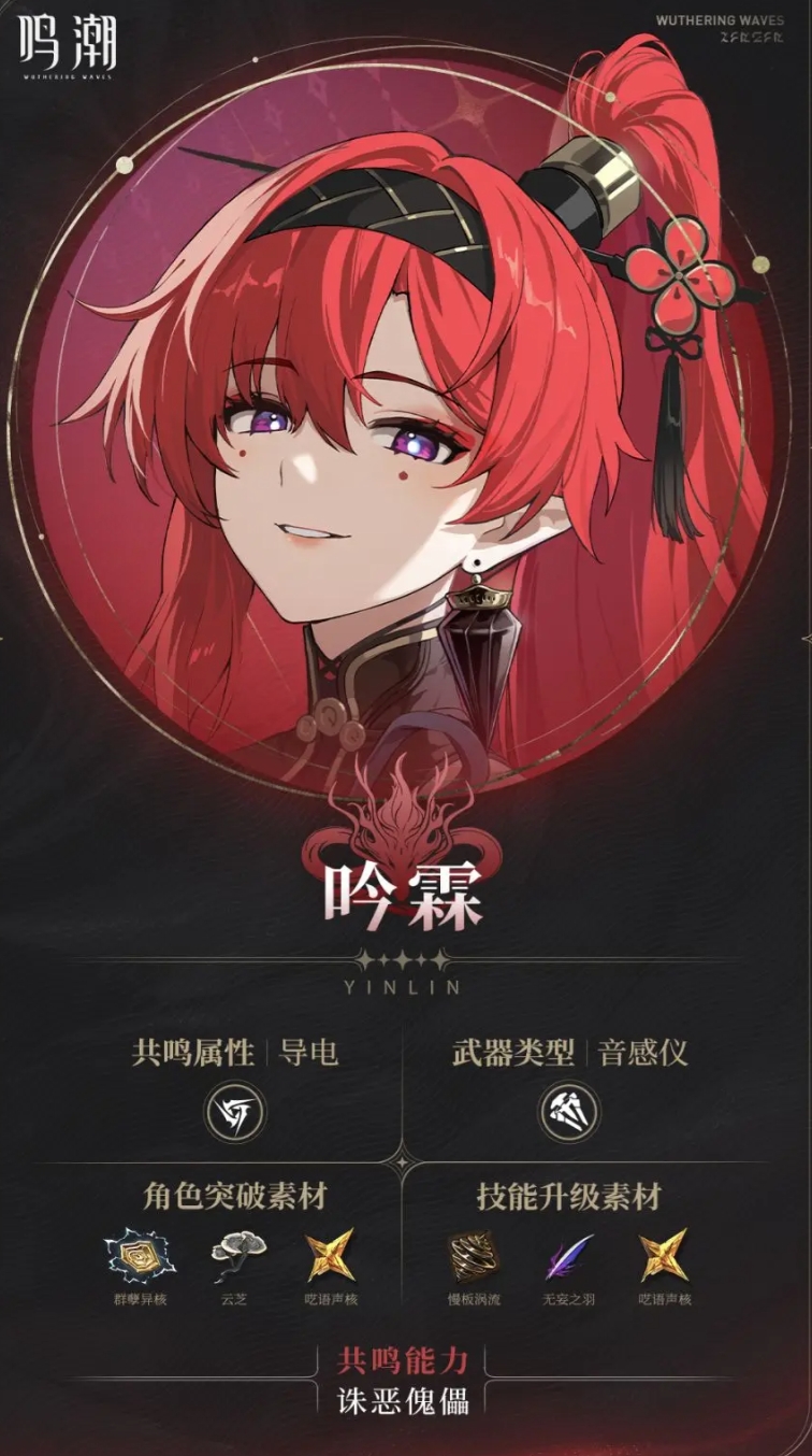 第三位就是吟霖了,作为最新的角色,那必是榜上有名了,她是一位强力的副C角色,核心技能就是通过普通攻击和技能给敌方挂上标记同时给自身叠加审判值,当审判值叠满后,吟霖的重击将会消耗审判值同时将敌方的标记转化为惩罚印记,在这个时候只要敌方受到伤害就会触发联动攻击,对敌方降下审判之雷,搭配输出频率高的角色非常厉害。