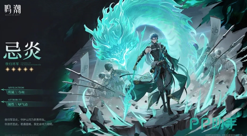 第一位忌炎,作为第一个限定卡池的角色,他的出现可以说是正式打响了游戏高潮,忌炎是一位群攻主C选手,手拿长刃,在战斗中能召唤青龙攻击对方。