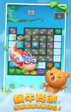 在这个游戏里,大家得一关一关地闯过那些挂在绿色藤蔓上的挑战。一开始任务都挺简单的,就是打打冰块收集一些可爱的小动物,让大家小有成就感。但别小看这游戏,后面关卡难度可就上去了。大家得琢磨着怎么选最佳的攻击路线拿到那些金灿灿的豆荚把被困的雪怪救出来。游戏里还有好多好玩的副本,这游戏就是一场冒险之旅,不仅要动手还要动脑。