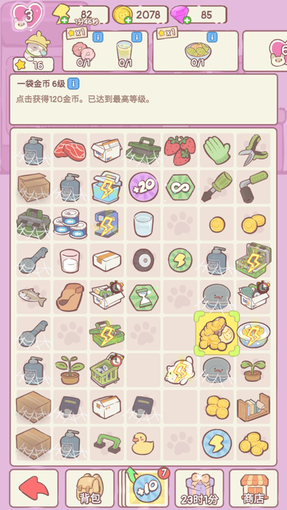 游戏中的合成元素有很多,完成不同的合成任务可以获得不同的道具和星星,星星可以用来建设我们的方块屋,不过每建设一个家具所需要的星星都是不同的,争取完成更多的任务获得更多的星星把我们的方块屋建设的更好看吧。