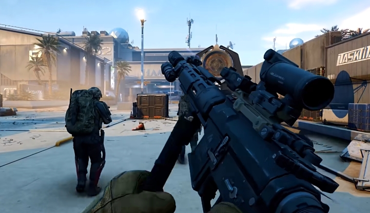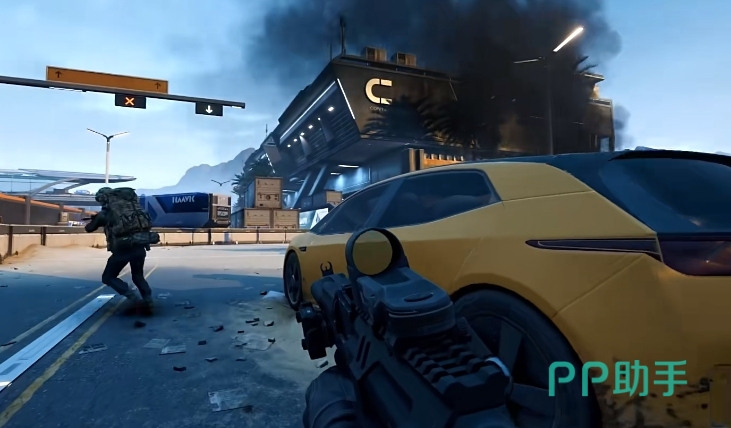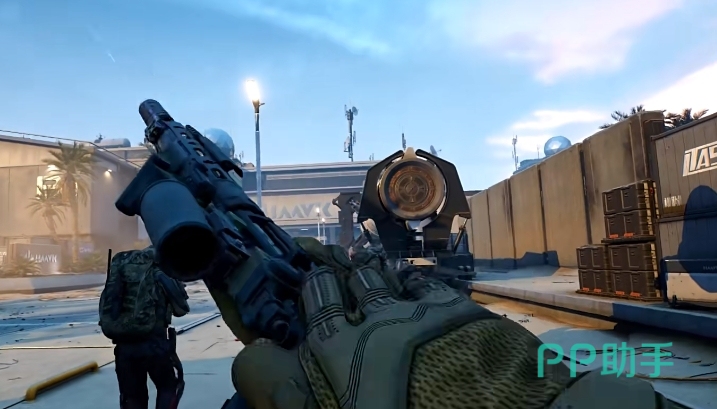 通过实机演示不难看出,这一次依旧是沙漠地貌,不过在一片黄沙中的建筑群格外醒目,其中也是有着漫天的烟尘和棕榈树。