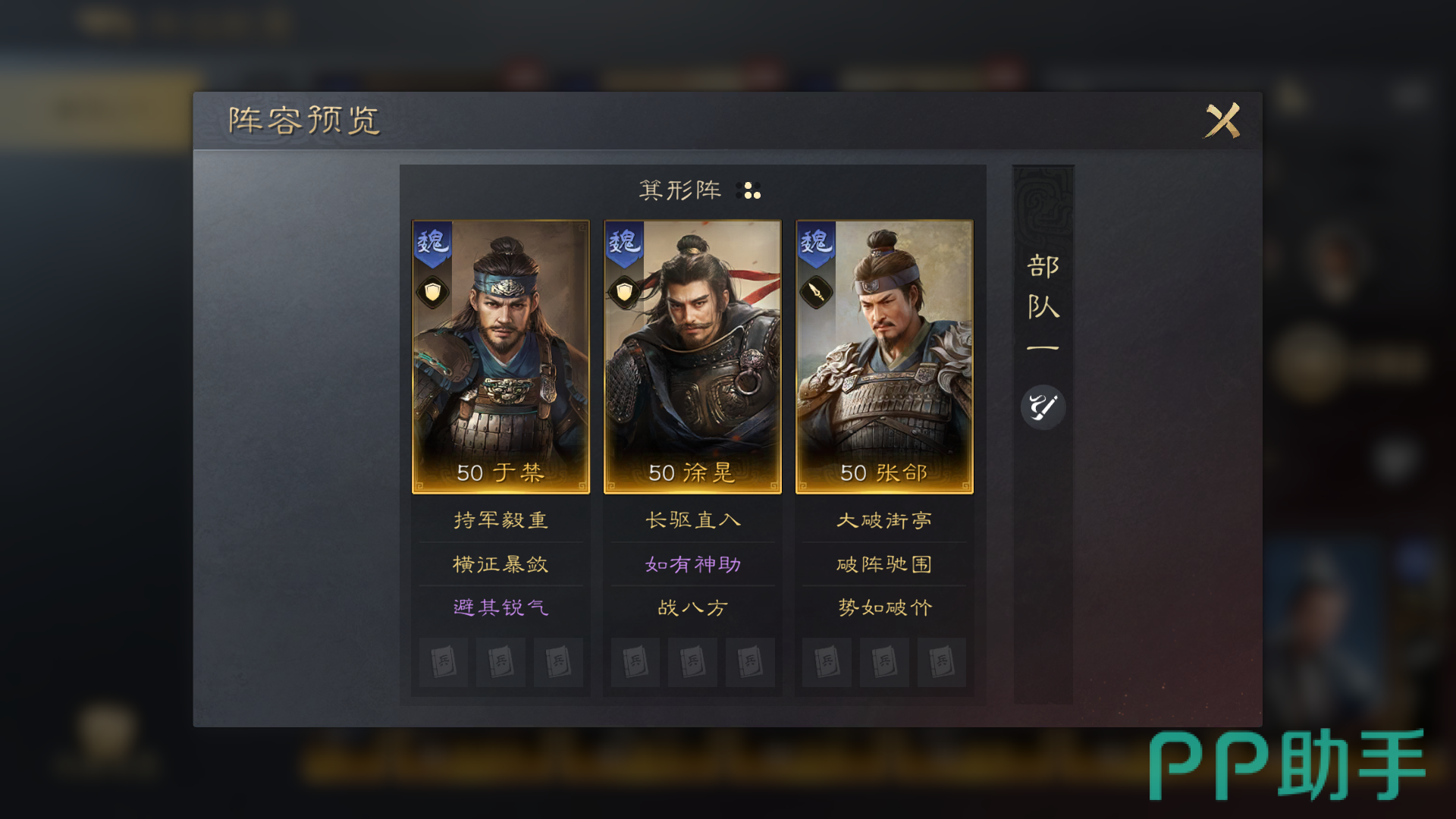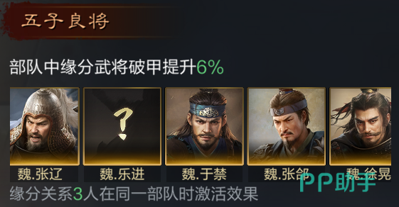这款三国谋定天下手游中还可以搭配不同的武将来组成羁绊连结,徐晃方面的话小编推荐大家给于禁和张郃,张郃自带的锐不可当和威名显赫这两个战法,可以提升军队的暴击伤害,搭配上张辽的话会提升武将破甲3%的数据,而双人只需要搭配上许褚就可以得到5%的武将破甲。
