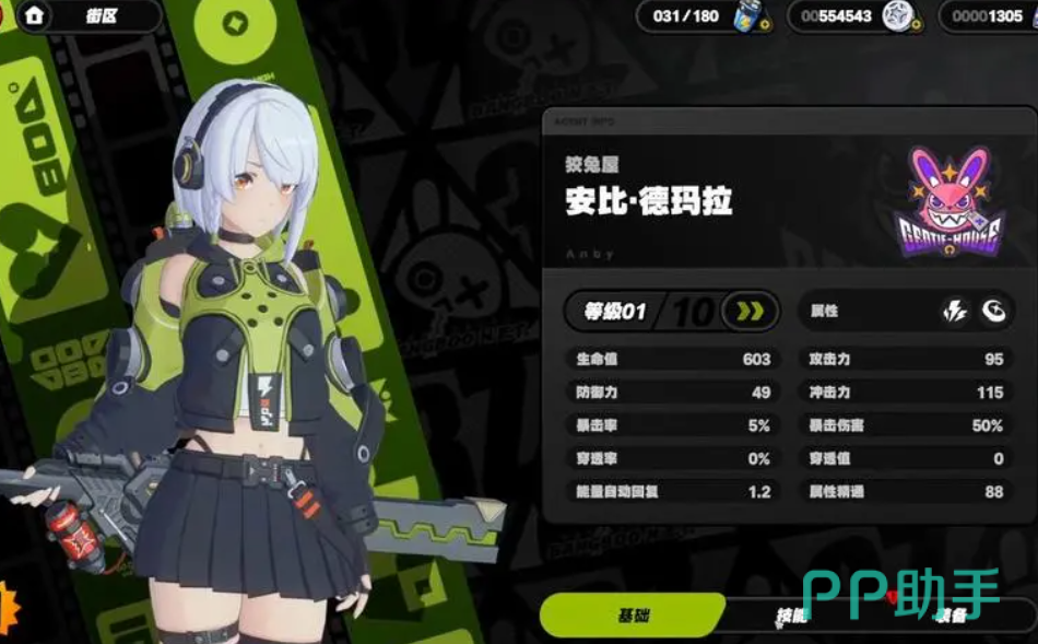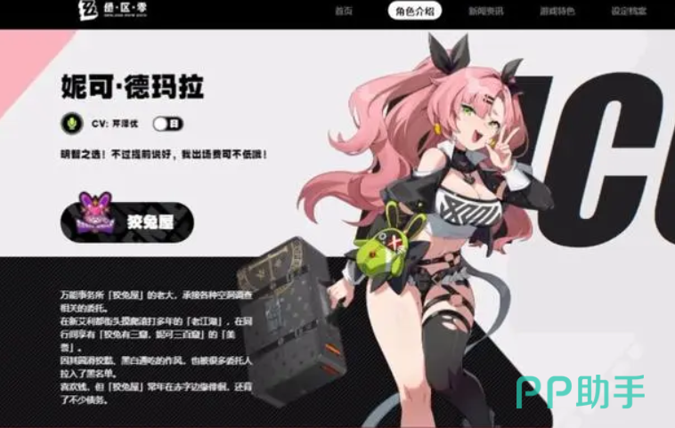 1、【安比:德玛拉】俏皮少女,丢失了过去不清楚年龄,被妮可捡到之后加入了狡兔屋。战斗风格干练,是成熟可靠的伙伴,个人爱好是看电影,喜欢模仿电影的画面和情节。