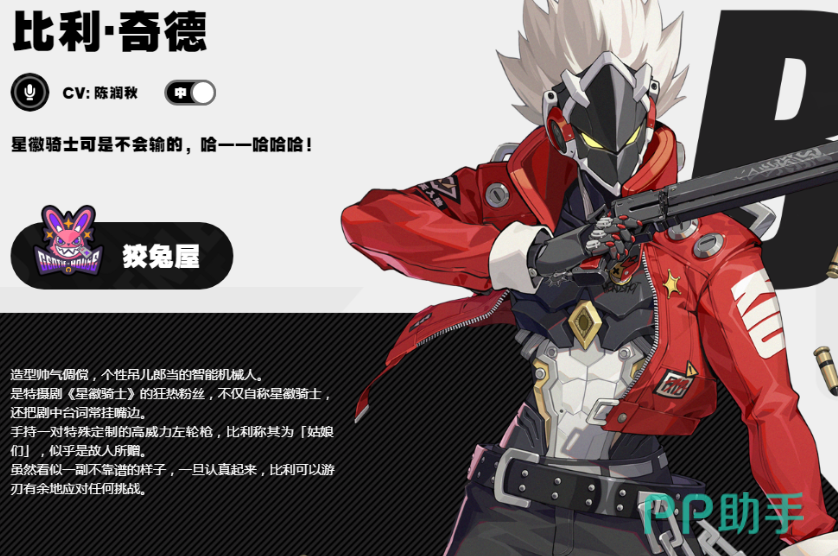 3、【比利:奇德】,是一个喜欢《星徽骑士》的智能机器人,经常模仿偶像的台词和角色形象。作为强攻角色,他的战斗力让人安心,风流的外表下是可靠的帮手!