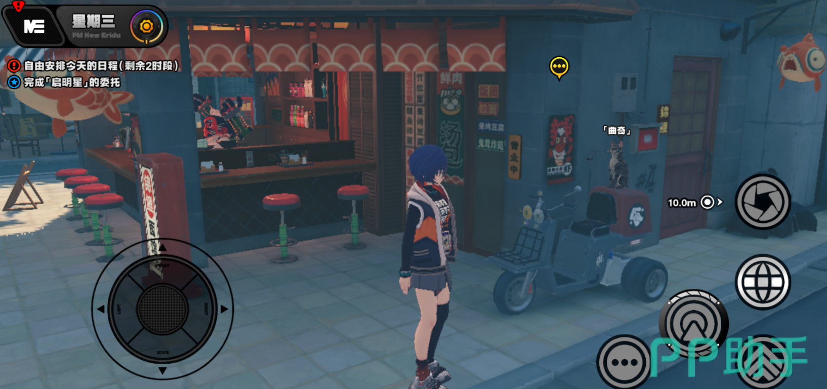 实际上是因为猫咪曲奇在游戏中刷新出现的时间是固定的,一般在中午的时候玩家前往拉面馆在右侧的电瓶车座位上有一定的概率能够看见猫咪曲奇。这算是这个任务中的隐藏元素和难点,很多玩家找不到猫咪的位置,就是没有在特定的时间阎前往。
