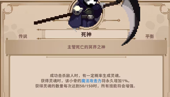 死神获取难度高,属于传说级头骨,获取难度较高,通常需要在游戏中开展更复杂、更具挑战的任务,或使用击败强大的敌人来获取,变成游戏中最珍贵、最热门的魔骨之一。死神魔骨的关键机制是[灵魂],玩家在杀死敌人后,有一定概率产生灵魂。这种机制不仅增加了游戏的策略性和随机性,而且使玩家在战斗中更加重视打倒效率战场的控制。玩家在获取灵魂时,能够永久提高法术攻击。这种效果是累积的,意味着玩家能够游戏中后期积淀生命,大大提高自已的战斗力,尤其是在应对强大的敌人而长期战斗时,死神魔骨的优点越来越明显。