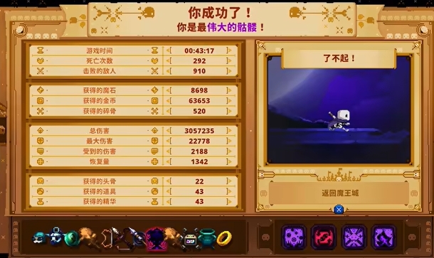 以上介绍的就是小骨英雄杀手狂战士搭配推荐,充分利用了恶魔狂战士头骨的高攻速和高攻击力特点,再结合巨魔精华的暴击效果和各类强力道具的增益,使得玩家能够在各种战斗中游刃有余。通过合理的战斗策略和装备搭配,玩家可以最大化自己的战斗能力,击败各种强敌,顺利通关游戏。