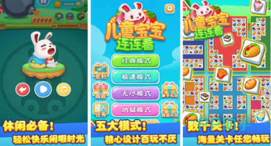 这款连连看游戏不仅适合年龄小的宝宝体验,它更是休闲必备的一款单机游戏,给玩家提供了五大模式,如果想要体验经典模式的话,直接点击就可以进入游戏。如果一直想要玩游戏的话,可选择无尽模式,可以在各种关卡当中感受轻松,快乐的时光,在连线的时候也可使用强力道具帮助自己更好的通关。