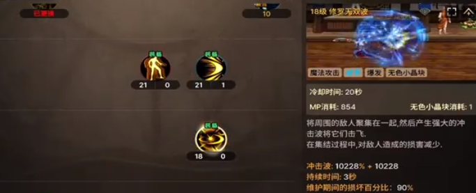 邪光波动阵:可以控制世界boss是一个强效的控制技能,建议只需要点一级即可。