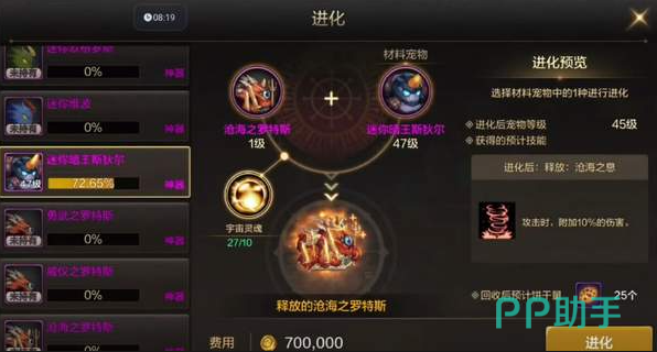 在吞噬成功之后还会返还一定数量的饼干,而至于那些宠物经验,因为是升级到史诗宠物可能在经验上都会有损耗,问题并不是很大。在升级完成之后,别忘记要选择去净化宠物技能,还需要点一动物经验。在这一个功能下,操作非常的简单,在进化时宠物技能等级马上就会进入到重置的状态。