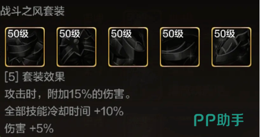 【战斗之风 套装】:这是一个套装,在挑选这一个套装后,一旦在攻击时可以得到15%的附加伤害,另外还能获得10%的技能冷却时间以及5%的伤害。