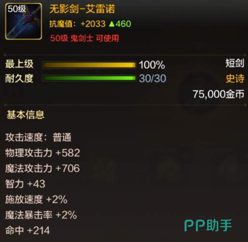 【无影剑-艾雷诺】:建议选择这一项武器,在攻击时可以获得30%的伤害。阿修罗本身就是魔法伤害职业,如果可以选择这项武器,能快速的提升面板效果。