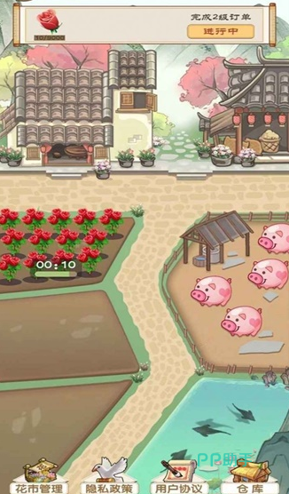 游戏里大家不仅可以种种美丽的花朵还可以养可爱的小猪。大家可以买土地用来种一些东西然后卖出去赚钱。想要卖得更多,那就多买些土地扩大大家的销售地盘。不只是种地和养猪,游戏里还有好多别的方式赚钱。大家可以去钓鱼,钓到稀有的鱼就能吸引那些有钱的顾客来消费。大家只需轻轻一点就能设置好自动经营。哪怕不在线,大家的农场和养殖场也会继续赚钱。
