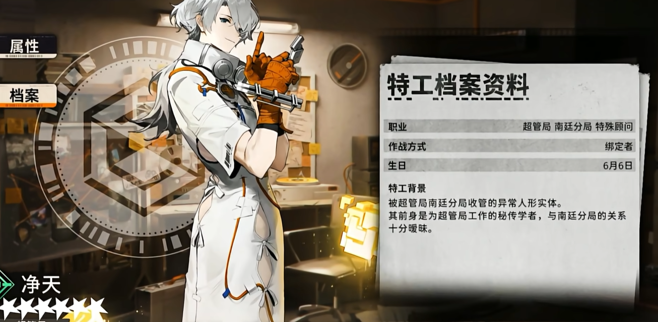 旗袍男的名字叫做净天,是一个白发帅哥形象,身穿旗袍拥有比较独特的个人魅力,而且技能方面设计也很有趣,可以从人和兽形态进行互相转换。