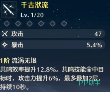 千古洑流这是一个值得选择的武器,无论是主词条还是副词条都是以攻击为主,甚至还能够带来暴击。武器还拥有一个被动效果,可有效提升使用者的暴击率以及共鸣效果。