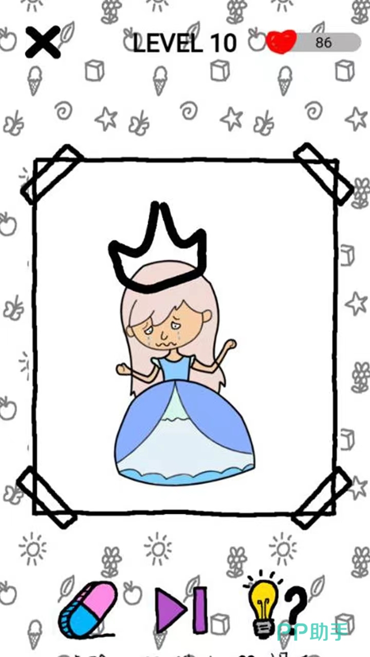 这是一个脑洞大开的游戏,里面的创新关卡好玩到停不下来,每一关当中都会有一定的谜题,只需要根据游戏画面中的一半化作,转动自己的思维猜出答案,即可补全剩余的画作,完成一整幅作品,带给玩家快乐的成就感,在玩游戏的过程中找到自信,挑战各种难度的关卡模式,不断的超越自己,沉浸式体验画画世界的美妙,培养自己的兴趣爱好,为图画中美丽的公主设计独一无二的王冠。