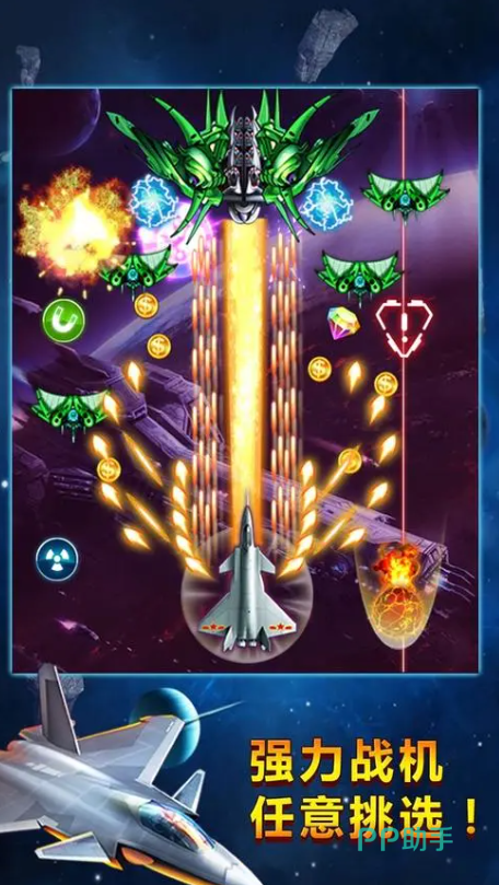 这款游戏提供了丰富的模式选择,让玩家能够根据自己的喜好培养和定制专属的战机。每一种战机都拥有独特的技能组合,玩家可以通过精湛的操作和策略,发挥出战机最大的潜力,守护自己的天空免受外星势力的侵扰。在这里,每一次飞行都是一场视觉与操作的盛宴,每一次战斗都是对技巧与智慧的考验。