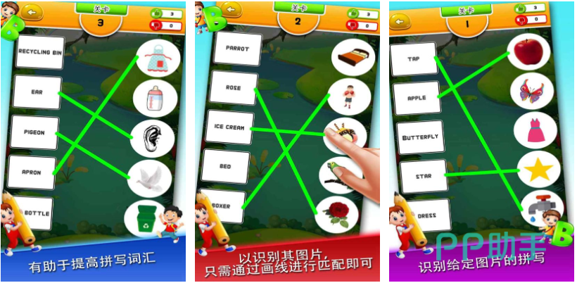 这款单机连连看游戏的初衷在于帮助玩家学会更多英文的拼写知识,各种各样的图片和全新的英文单词丰富了玩家的认知,鲜艳的画面配以纯英文的BGM也是本作的亮点,音画表现和操作体感都是无可挑剔的,丰富的关卡自然会让玩家对于英文的认知更胜一筹,如果你也想通过玩游戏提升英文知识储备就安装本作吧。