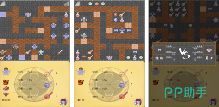 《魔塔红》的内存虽然不大,但制作却异常精致,关卡中的道具和地图设计的也很舒适,游戏故事主要讲述了公主被魔王抓走你作为勇者打败魔王的故事。共有18个关卡,也就是18层,每一层除了基本关卡以外还有6个隐藏的关卡,这些关卡中共有3个圣器,大家需要将生气全部找齐以后才可以顺利通关。游戏比较考验策略,玩的时候需要动脑筋,每一个选择都可能导致不一样的结局。
