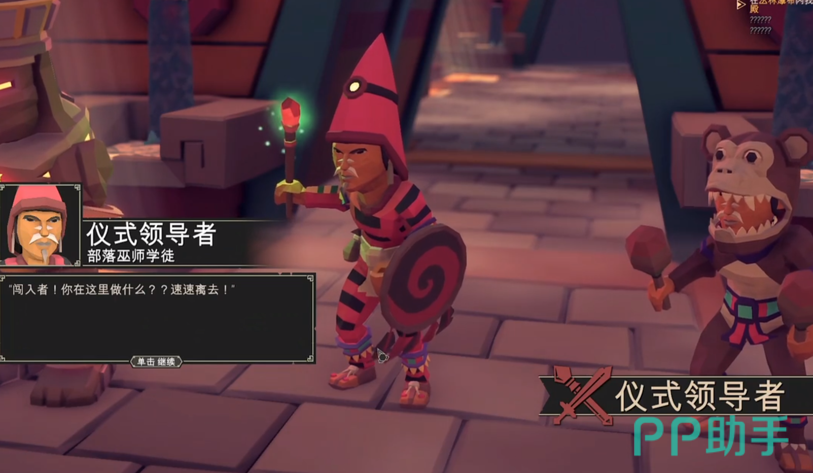 在经历过巨石陷阱之后,会出现古代神殿的仪式领导者,想要把玩家赶出去,仪式领导者的血量很厚,攻击力比较强,伤害也高,玩家在击败仪式领导者的过程中记得保护自己,多使用恢复性的装备来保护自己。