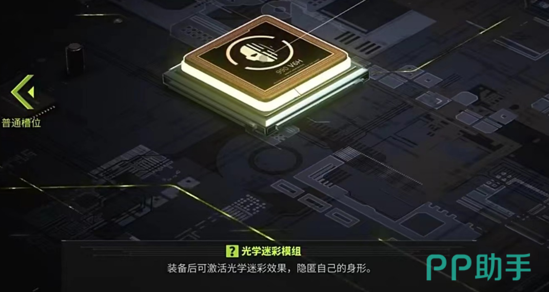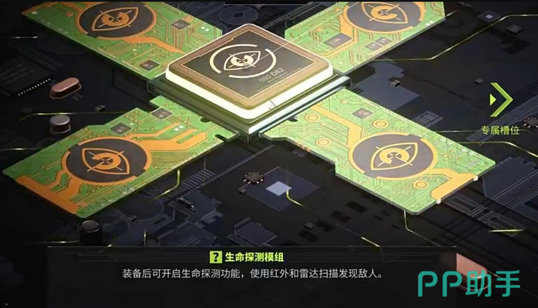 然后,再带上友好信号增强芯片,这个芯片就像是一个GPS定位器,可以实时显示队友的位置,让我们能够更好地与队友协同作战。接下来我们可以选择功率增强芯片,进一步提升我们的侦察能力。最后,身份认证芯片则能帮助我们快速分辨出敌人是玩家还是电脑,这样我们就能根据敌人的不同类型采取不同的应对策略。
