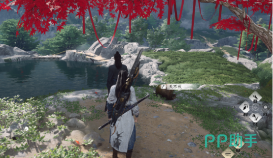之后往右走,在月神所住的地方摘到半月花,在桌子旁边拾取童子小剑最后返回月神所在的地方提交道具就能够完成,离开就能够获得一个奇数名字叫做红尘障目。