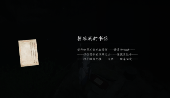 开启大门之后,清除路上的布条,在桥的尽头就能够获得书信,获得三分不同的书信之后需要将这些信件合成。玩家可从月神背后的栈道跳下去,之后就能够看到信纸托盘了。在托盘上拼凑成完整的书信。