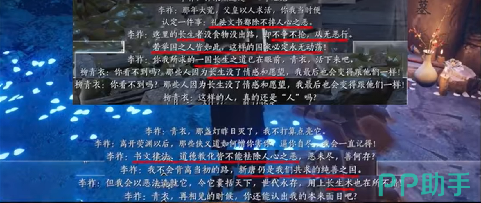 万世新唐计划作为贯穿游戏中期的重要剧情线索,简单来说就是李祚经历战乱,认为文书礼法并不能去除人心之恶,于是有了使用长生之术将全国人转化为不争不抢的长生者,由此便可以建立起他心中的万世新唐,一个世代永存,不会灭亡的纯善之国。这也是他剧情的主要内容。