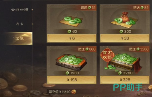 玩家在购买之后还能有效得到480玉石,只要在月卡的生效期间,玩家登录游戏立马就能得到240黄金。除了大小月卡之外,别忘记还应该选择首充,仅仅只需要6元就能有机会拿到首充奖励。至于首充的双倍奖励,玩家就应该根据个人的实际情况看看到底是否应该选择。