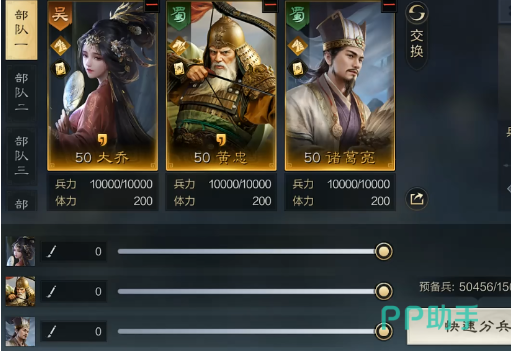 在阵容搭配上可以选择刘备、孙坚、黄忠。这一个阵容会有许多的特点,本身就是全骑兵属性,在第1个回合孙坚就可以嘲讽全员,而且还可以刷负面效果。可以有效保证最低的血量,此时刘备还可以用技能来达到清除负面buff的效果,黄忠可以有效保持血量,而且还能够提高伤害。