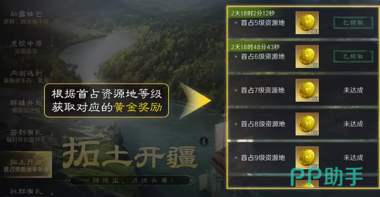 游戏中活动方面还是非常丰富的,能让玩家在游戏中获取大量的养成资源和道具的同时,磨练玩家在游戏中的战斗技巧和谋略!第一个为大家介绍的活动就是【拓土开疆】,该活动玩家可以理解为一个休闲日常的活动,通过占领相关的资源来获得额外的道具奖励,这个活动长期有效。