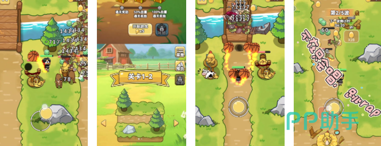 玩家会变成一只萌萌哒的小鸡,可以带着这只小鸡去选各种超厉害的高科技武器,然后跟其他部落的人开打。这些炮弹的威力都不同,所以我们怎么搭配它们,就会有不同的打仗效果。每个玩家都可以在游戏里找到最适合自己的塔防组合,然后努力帮助自己的部落打赢,其实这款游戏就是让我们用自己的小鸡和炮弹,想办法赢得胜利。