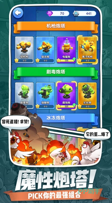 它是个卡通风格的塔防手游,游戏里有好多超有个性的英雄角色等玩家去收集。大家可以像指挥官一样,动动手指就能调兵遣将,随心所欲地升级和建设自己的城池,还可以尝试各种不同的阵容搭配,去挑战形形色色的敌人。可以根据敌人的不同,选择最合适的角色去攻击,不同的技能组合能衍生出好多新奇的战术。每场战斗都像是一场头脑风暴,要怎么赢全看自己如何运筹帷幄。
