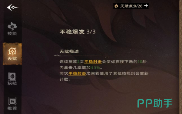 如果玩家解锁了天赋系统,可以获得一定的天赋。其实玩家体验的时候可以完成主线任务,解锁对应的技能,秘籍等等。不过玩家需要主意,天赋解锁需要一层一层的来,而每一层的天赋都需要消耗天赋点,针对于这一点玩家要引起注意。