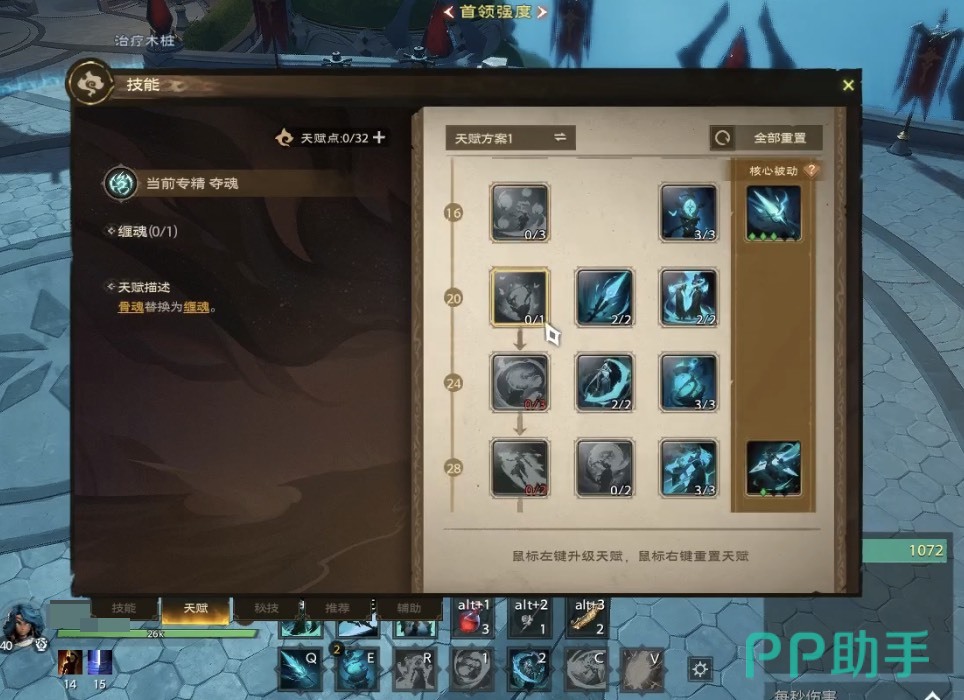 骨魂天赋则是pve和pvp通用,召唤灵魂时,部分技能有加伤,爆发比缠魂强。如果觉得能量不够,可以点怨灵。打群怪的话,就把三层强魂换成三层强化魂之歌。连击率不够最高天赋层数的,可以点满支配。