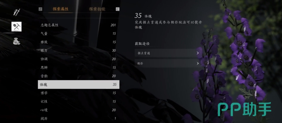 玩家只要打开自己的探索界面,就能在探索属性一栏中找到自己当前的体魄属性数值了,并且旁边的说明会给出提升体魄数值的具体方面。当前游戏里想要提升体魄,唯有通过完成据点的首通,和参与相扑小游戏才能做到。