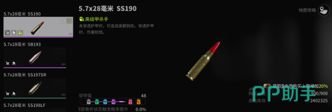P90作为一把冲锋枪,在伤害输出方面无疑是顶级的。即便是在5级偷家的紧张局势中,它也能对敌人造成巨大伤害,甚至直接摧毁低护甲的装备。当然,选择合适的子弹对于发挥P90的最大威力至关重要。在这里,强烈推荐使用ss190子弹。这种子弹被誉为“高级甲杀手”,特别适合对付护甲较弱的敌人,能够在极短的时间内将其秒杀。而且,ss190子弹的消耗量相对较低,这使得玩家在长时间的战斗中能够持续保持高效的输出。