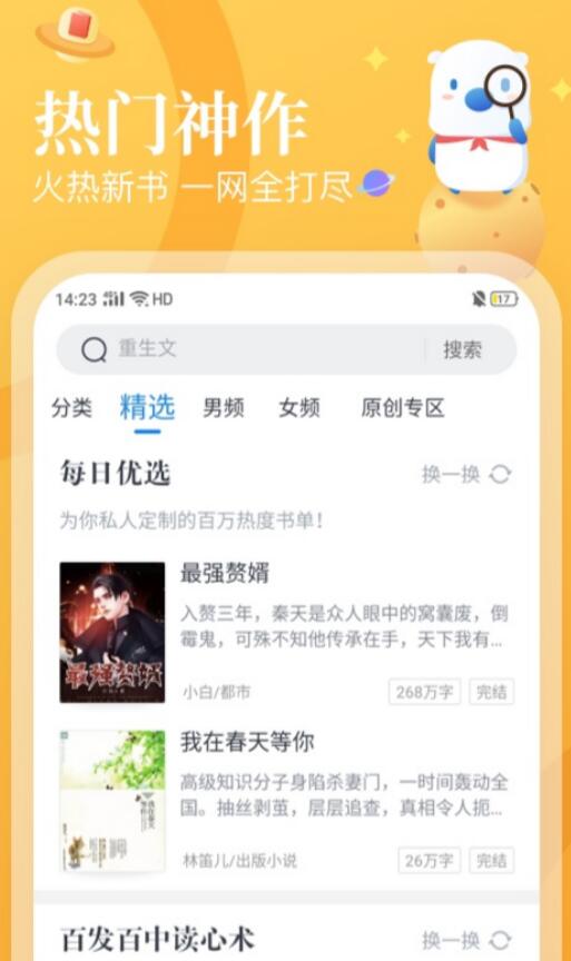 平台将小说大体分为了男频和女频两个大类,其下还包含了许多细分的类别,大家在查找想看的小说时,直接切到对应的分类下翻查即可。在书单广场上,系统还会制作一些书单,把故事相似的小说归纳在一起,让你可以一次看完同类型的热门作品。软件内的书库也是在实时更新的,会及时收录新上线的小说,让用户始终都有新书去看。
