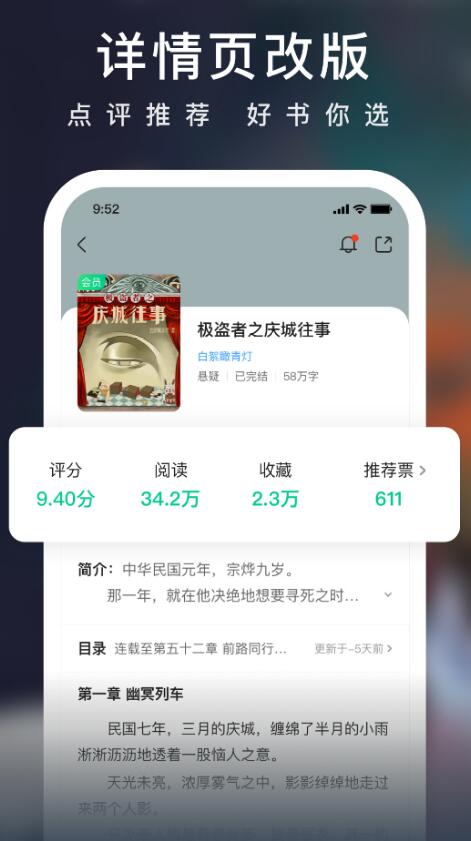 在这个app里面,你不仅能找到热门的网络小说,还可以发现许多爆火的影视原著,一些在影视剧中无法展现的剧情,大家可以通过阅读原书进行补全,书城内的每一本小说都附带了一个详情页,其中包含了关于书籍的基本信息以及故事梗概。