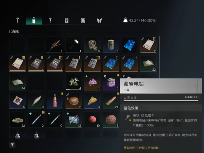 想要做出电钻,首先我们需要去到中级或高级的工艺台中去,这里面主要需要用到的材料是蓄电池,其他的材料其实很好获得,基本上玩家们都能够凑够。