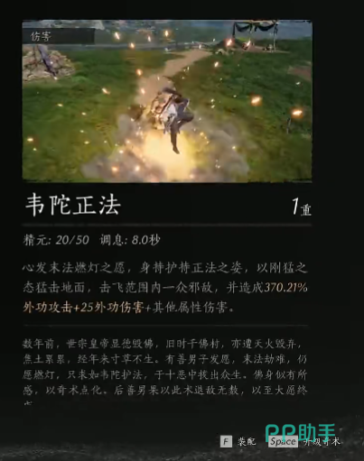 其次是“韦陀正法”这一内功,它比起”百鬼打穴手“来说,就没有对于boss的攻击限制了,并且在对敌方造成的伤害也会更多,这一内功是可以将范围内的敌人全部锤飞并造成伤害,姿势和特效都挺帅的哦。