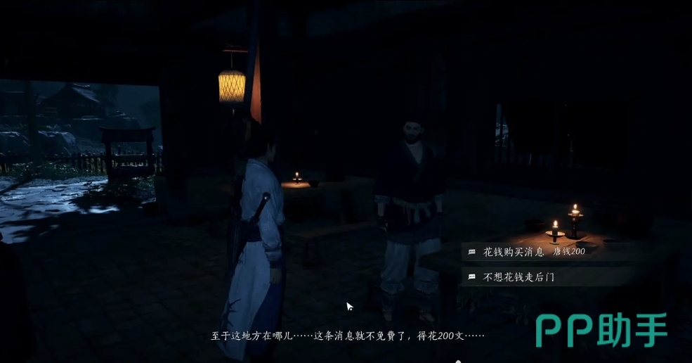 首先我们来到隐月山的丰禾村找到客栈的店小二,他有天泉长老的下落,我们要给钱给他他才会给我们消息,然后只需要根据线索一步步找到长老就可以了,找到后有两个选择,一个是给长老999文钱或者大声表示入门决心,这里小编给大家解释一下,大喊是没用的哈,只能给钱,可能是门派的钱给用来接济别人了,所以没钱了。