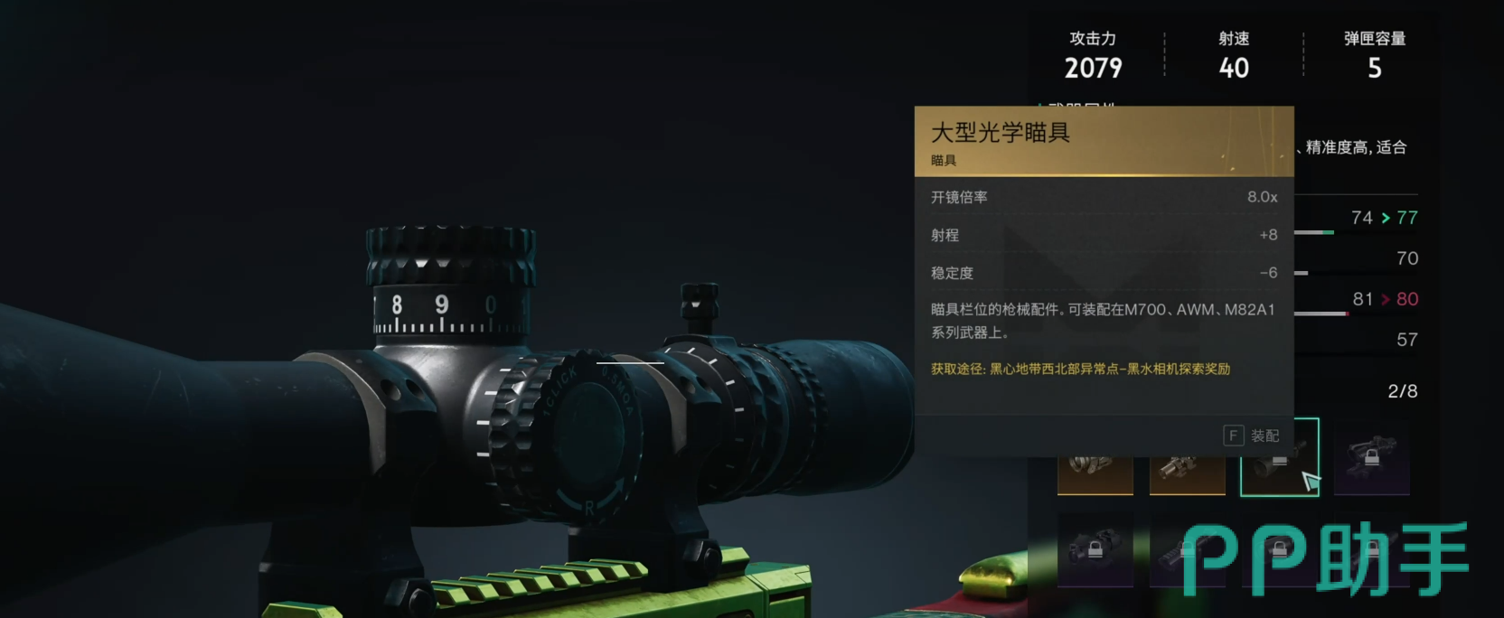 这个大型光学瞄具,其实就是我们日常所说的狙击枪八倍镜,相信有很多玩家在玩射击游戏的时候都见过。那么要怎么去获得这个大型光学瞄具呢?这个就需要我们在赛季阶段那里点击进入到第二阶段,解锁全区域之后,去到黑心地带的位置,想要找这个黑心地带,需要我们到白崖基地的左下角那里去点击,大概坐标是【3039.990】这样。