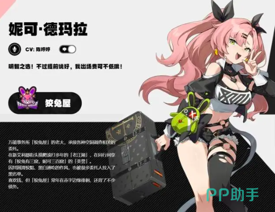 妮可在游戏当中属于a级角色,并且作为御三家之一,虽然仅是ag角色,但是他的角色人物,设计和性格等方面深受各位玩家们的喜爱,操作难度也并不超标,除了s级人物,他也称得上是一个关注度和热度都非常高的角色。在游戏里你可是隶属于狡兔阵营的,而且是其中的老大,该阵营当中主要承接各种关于空洞调查的分支任务,接下来小编就要说一说这个角色的装备推荐了。