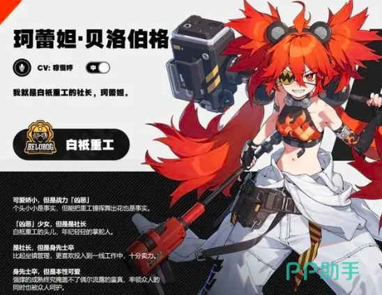 第三位角色克蕾妲隶属于白祇重工,不要看他外表十分萝莉,但是他却是一名火属性击破型角色。小小的身体可以爆发出非常强劲的能力,而且他的武器是一把大锤,可以在一定范围内对敌人造成高强度的进攻,并且能破坏周边的障碍物。在游戏当中是白祇重工的掌舵人,而这一点上完全与他的外形不符合。